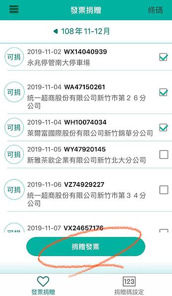 點選你想捐贈的發票->選擇你想捐贈的社福團體