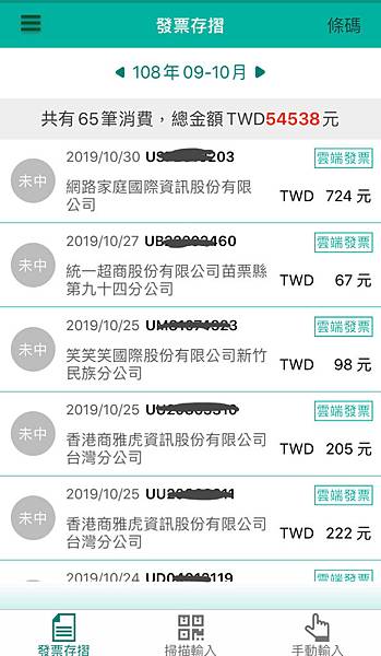 只要是使用使用手機條碼載具存入的發票都會顯示在這裡一目了然