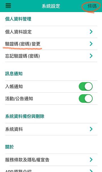 在「系統設定」中可以找到「驗證碼(密碼)變更」的選項點入